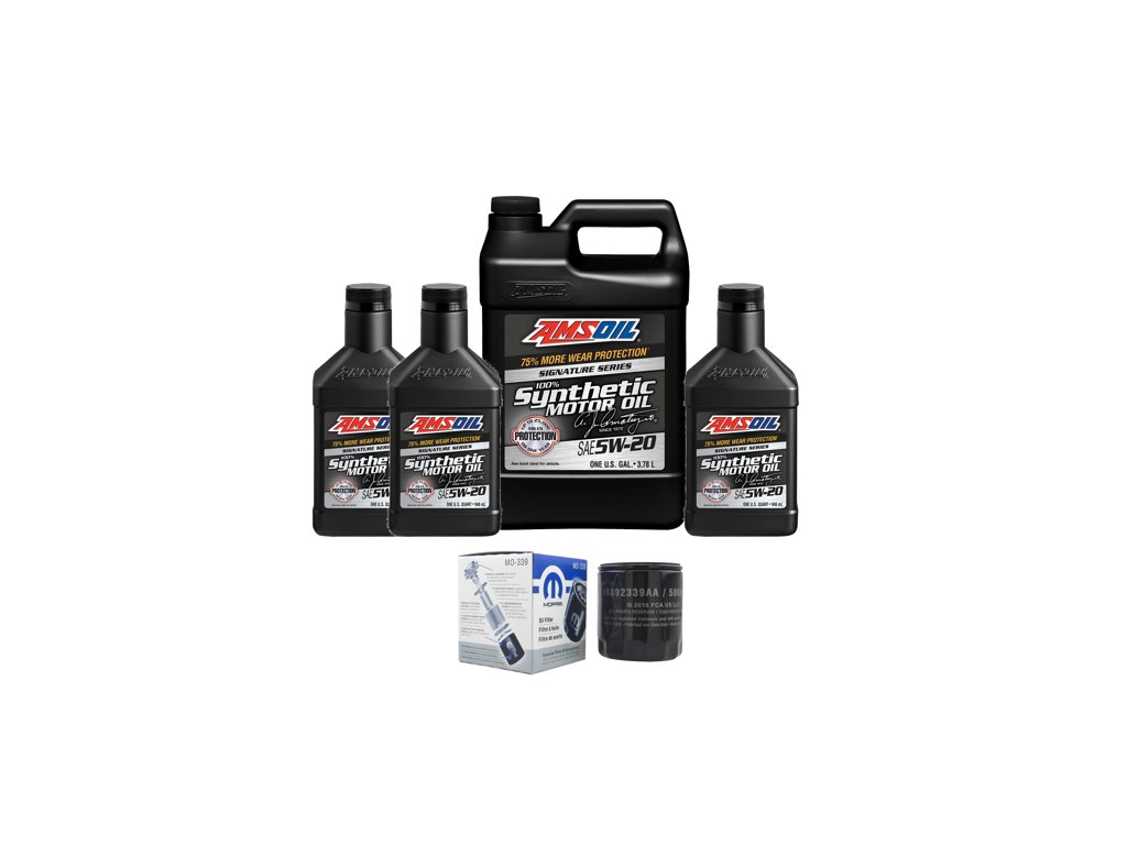 Sada obsahuje 1x balení AMSOIL 3,78 L + 3x balení AMSOIL 946 ml + originální filtr MOPAR MO-339